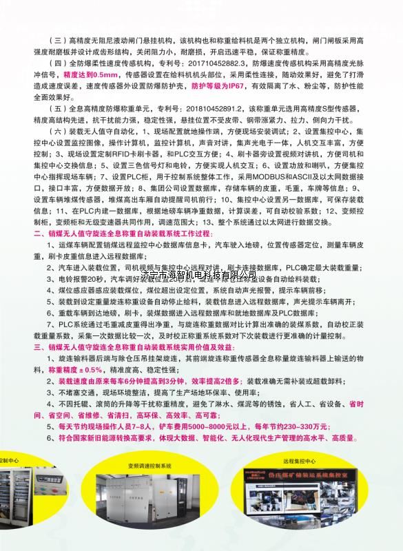 本產(chǎn)品一經(jīng)推出即獲得各大設(shè)計(jì)院及用戶的一致好評(píng),率先在棗礦集團(tuán)岱莊煤礦取得成功應(yīng)用,2018年9月受邀參加了《棗礦集團(tuán)煤場(chǎng)封閉暨儲(chǔ)裝運(yùn)系統(tǒng)智能化升級(jí)改造現(xiàn)場(chǎng)會(huì)》,智能裝車系統(tǒng)得到了充分肯定!我司憑借雄厚的加工制造實(shí)力及過硬的創(chuàng)新技術(shù)能力,勢(shì)必為運(yùn)輸稱重系統(tǒng)、快速計(jì)量裝車系統(tǒng)帶來又一次的技術(shù)創(chuàng)新變革。