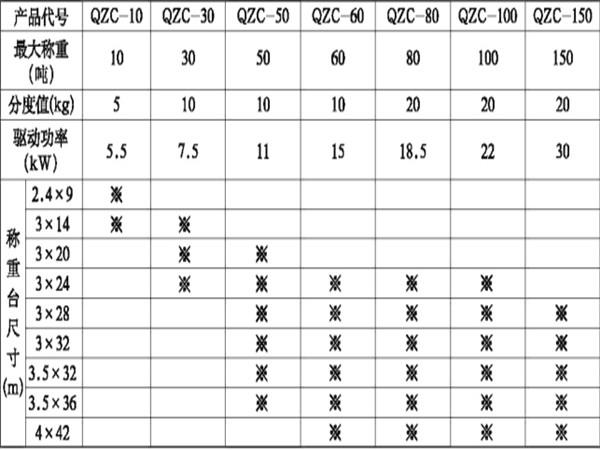 QZC系列稱板移動精準快速裝汽車系統技術參數表: