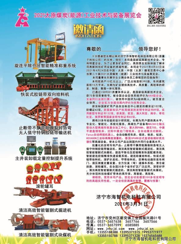 > 邀請函:第二十屆2021太原煤炭(能源)工業技術與裝備展覽會